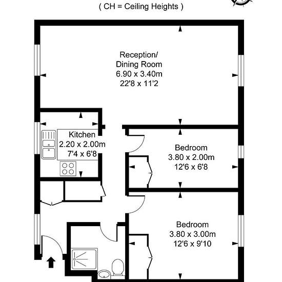 The property comprises two well-proportioned bedrooms, a bright reception room with ample space for both living and dining, a separate fully fitted kitchen, and a modern family bathroom.