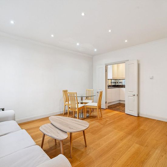 Located on the raised ground floor of a well-maintained building with porter and lift. The property offers a stylish living space, featuring wood flooring throughout and excellent natural light. The accommodation offers a bright and welcoming reception room that forms the natural centre of the home, with space for both relaxing and entertaining. A contemporary kitchen sits just off the living area, featuring integrated appliances and a practical layout. Both bedrooms are arranged along a corridor, providing a good sense of privacy from the m...