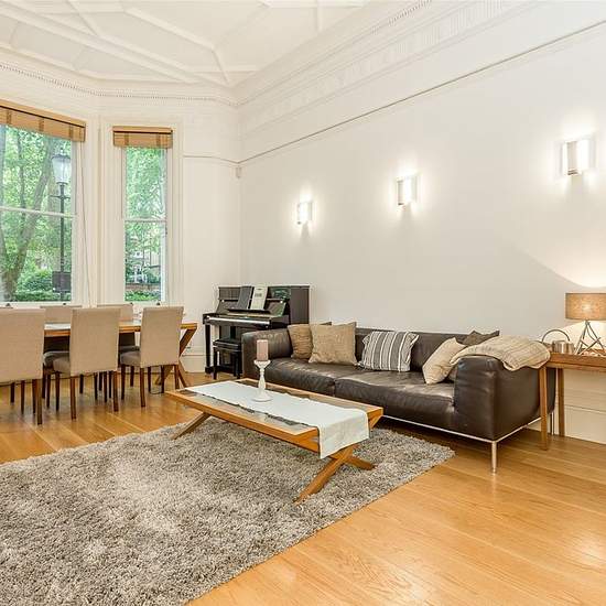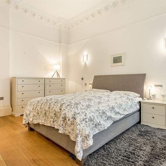 A truly beautiful two double bedroom apartment with high ceilings and wooden floors presented in immaculate condition, situated at raised ground floor level of this stunning red brick apartment building. The location of this apartment is quite charming with views over communal gardens. The property has recently been refurbished to a particularly high standard and offers spacious accommodation of circa 1000 sq ft. Accommodation comprises: Two double bedrooms; Walk-in dressing room; One bathroom (en-suite); One shower room; Large reception ro...