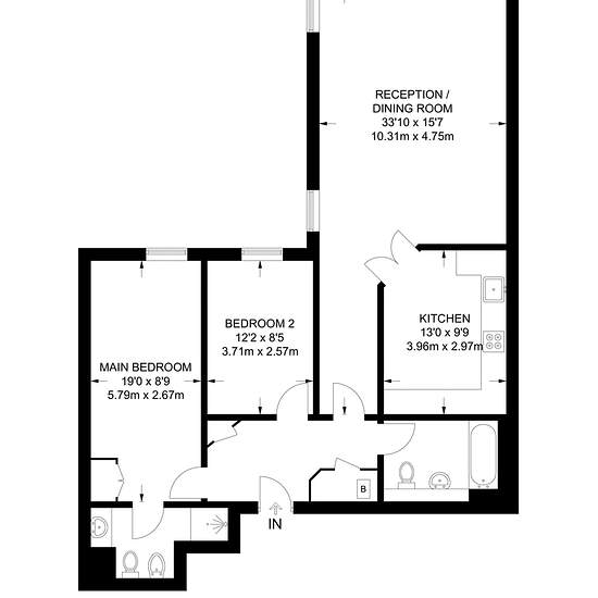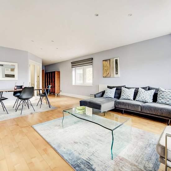 Secure entry and lift to the fourth floor Large entrance hall with storage cupboards Dual-aspect reception room with space to dine Sleek integrated kitchen with excellent storage space Master bedroom with fitted wardrobe and en suite shower Good-sized second bedroom Contemporary bathroom Neutral decor and attractive wood floors Set within an attractive portered development, this fantastic two bedroom 2 bathroom apartment offers generous living and entertaining space with stylish modern décor. A wealth of shops, bars, cafes and restaurants ca...