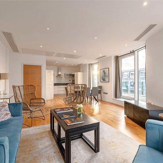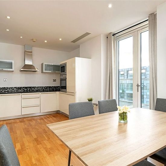 Stunning two double bedroom apartment in the much sought after Ability Place development located in the heart of the Docklands only walking distance to Canary Wharf and its vast array of shops, bars and restaurants. This apartment has a spacious and bright open plan living area with wooden flooring throughout and leads to a huge eye opening terrace where southerly views stretching to the River Thames and Greenwich can be enjoyed as well as the ample space to socialise in the summer. Both bedrooms are generously sized with plenty of storage s...