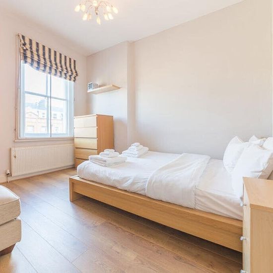 A beautifully presented two-bedroom apartment on Warwick Road, offering bright, contemporary living in a prime Earls Court location. The property features a stunning front reception room with large sash windows, flooding the space with natural light, complemented by stylish wooden flooring throughout. Two well-proportioned bedrooms are positioned to the rear, alongside a modern bathroom and a fully furnished interior. Ideally situated within moments of Earls Court station and local amenities.