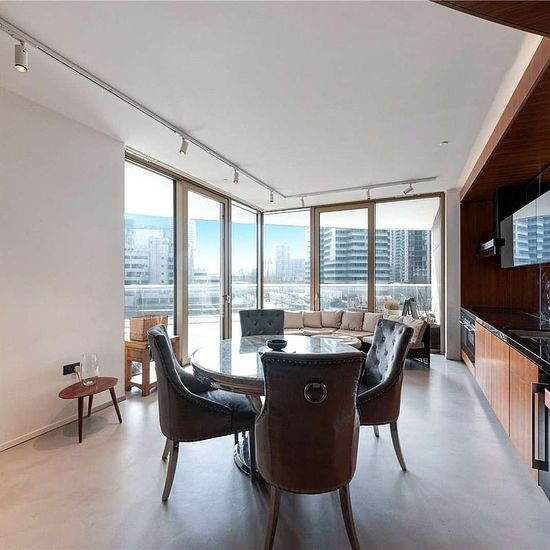 A modern two-bedroom, two-bathroom apartment with a private balcony, set within this landmark waterside tower on the eastern edge of South Dock in Canary Wharf. Beautifully designed and wonderfully bright, this spacious apartment features a bespoke open plan layout enhanced by large floor to ceiling glazing, underfloor heating, and comfort cooling throughout. The living area flows seamlessly onto a private balcony, offering unique views and an ideal space to relax or entertain. The development provides an impressive selection of premium resi...