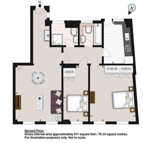 A newly decorated two bedroom two bathroom apartment located in South Kensington. Set on the second floor of this apartment building with lifts, concierge and communal gardens, the apartment comprises a bright lounge with dining area, a separate fitted kitchen, two double bedrooms with fitted cupboards, two bathrooms (one shower and one tub), gas central heating, and a video entry phone. The gross internal area is approximately 811 square feet (75.34 square metres). The property is located a short walk from South Kensington Station (Piccadil...