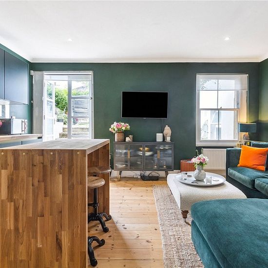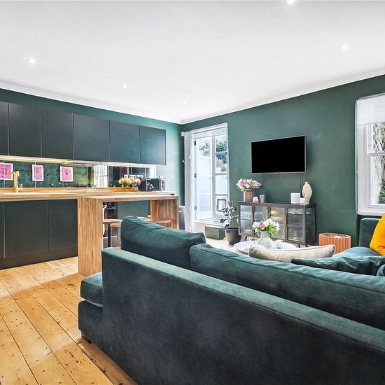 This newly refurbished two-bedroom lower ground floor apartment is set within an elegant converted Victorian villa, showcasing a blend of original features and high-spec modern finishes. Accessed via a grand front entrance with striking mosaic tile flooring, the property is positioned on a peaceful, tree-lined residential street in the sought-after Grove Park area of Chiswick. Internally, the flat offers a bright and well-balanced layout. The contemporary kitchen is fitted with integrated appliances and a stylish breakfast island, complete w...