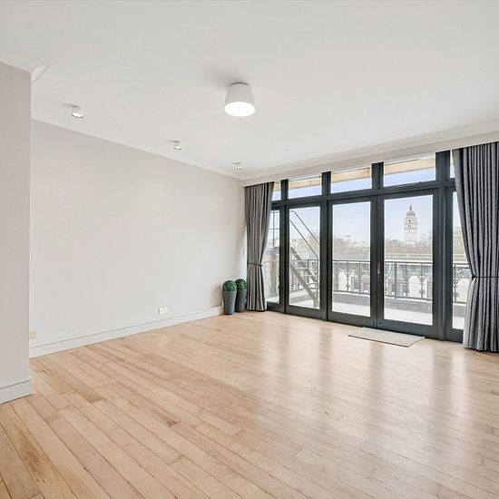 The property features a large reception room with impressive proportions, providing ample room for both living and dining areas. From here, doors open onto a private balcony, creating an appealing indoor–outdoor flow and offering a peaceful space to relax. There are two double bedrooms, both generously sized and positioned for privacy, along with two bathrooms, including one en‑suite. A separate, well‑planned kitchen sits just off the main hallway and is conveniently located close to the reception space. Ennismore Gardens is one of London’s...