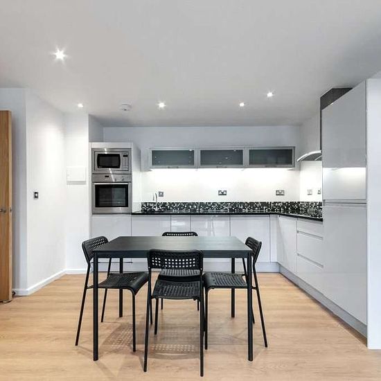 This stylish two-bedroom, two-bathroom apartment is situated within the contemporary Ability Place development. Offering a spacious living and dining area, a fully fitted kitchen with integrated appliances, and beautiful wood flooring throughout, this furnished apartment also features floor-to-ceiling windows that fill the space with natural light. The master suite includes an en suite bathroom, and there is a second tiled bathroom for added convenience. With two private balconies, you can enjoy outdoor space in the heart of the city. Reside...