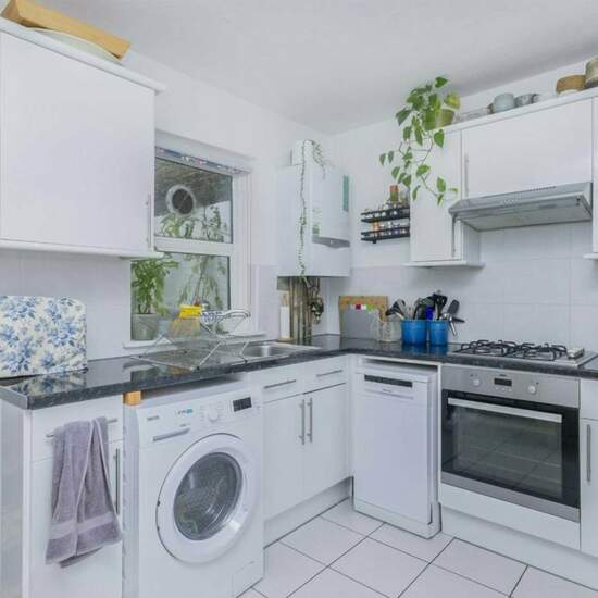 A two double bedroom, one bathroom ground floor flat with a private front door, a lovely paved garden perfect for barbeques and a large eat in kitchen. This spot is perfect for a quick walk down to the station and a short up hill walk to the common at the top of the road. If you're feeling adventurous it's not too far from Clapham High Street. Security Deposit: £2,307 Council Tax Band: D