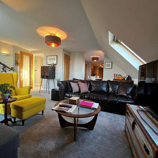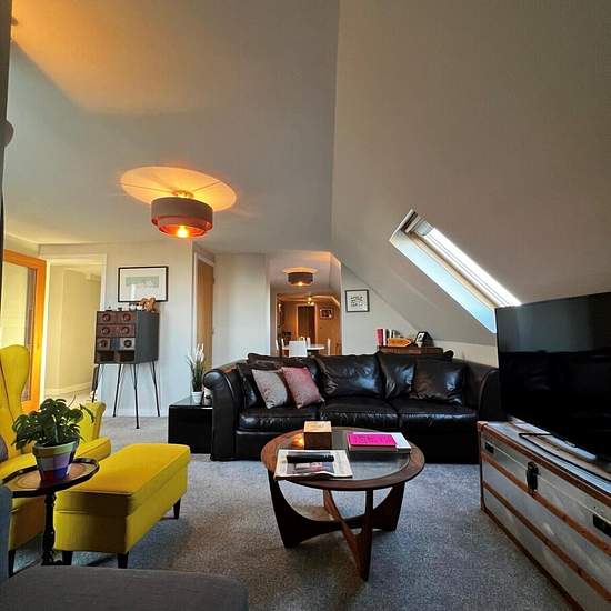 Zero Deposit Guarantee Available This extremely spacious and versatile split-level apartment is set on the fourth floor of Trinity Court, an iconic old school that was converted to apartments with lift access to all floors. On the main level you enter a welcoming and large hall with doors leading off to the second double bedroom with en-suite, main family bathroom and main reception room. The living room is a fantastic size and boasts dual aspect roof top and views of the sea, with a door leading out onto your own private roof terrace, wh...