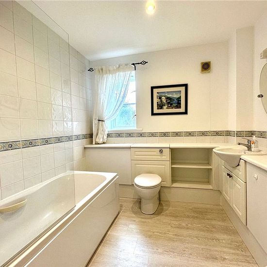 Two bedroom first floor apartment is set in stunning communal grounds with the River Leven running through. Formerly the Friends School the development was built by Taylor Wimpey and is located in a central position within walking distance of the High Street shops and amenities. The apartment offers a modern, light and airy interior with ample storage and accommodation comprising; entrance vestibule and hallway, open plan living room and dining area with French doors to a Juliette balcony. A modern kitchen breakfast has integrated appliances...