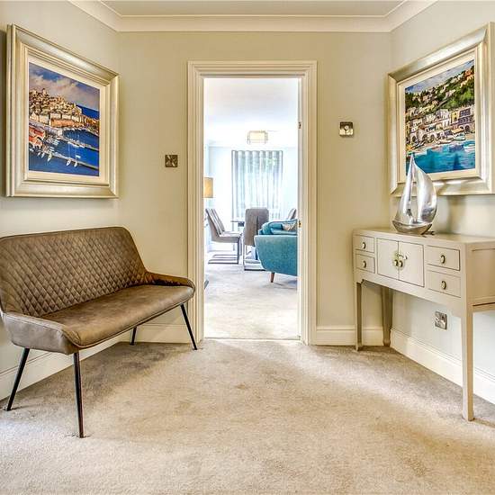 A recently refurbished two double bedroom apartment situated in the heart of Canford Cliffs Village, whilst also being a short walk to the beach. Finished to a high standard throughout. The Pentagon is a purpose built block of apartments, situated within the heart of Canford Cliffs Village whilst also being just a short walk to Canford Cliffs beach. The apartment has been finished to a high standard throughout and comprises two double bedrooms, both benefit from fitted wardrobes, two luxury fitted bathrooms (en suite to bedroom) a recently f...