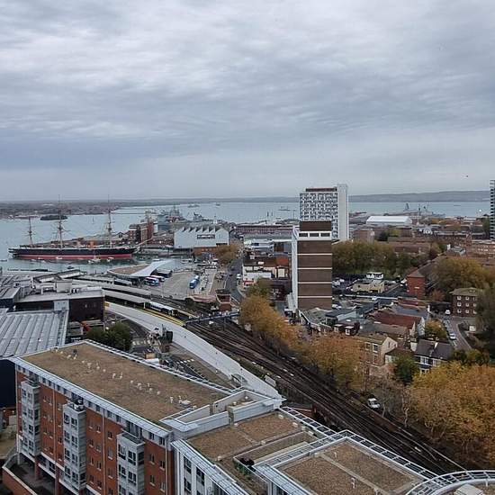 PROPERTY SUMMARY A side (north westerly) facing 17th floor, two-bedroom apartment with outstanding views towards HMS Warrior, the Naval dockyard, Portsmouth Harbour and Portsdown Hill in the distance. The internal accommodation provides 603 sq ft of living space and comprises; hallway, open plan kitchen / living room with door to balcony, family bathroom and two bedrooms, one with en-suite shower room and the second bedroom has access to the balcony. The newly redecorated, unfurnished apartment benefits from new carpets, underfloor heating, ...