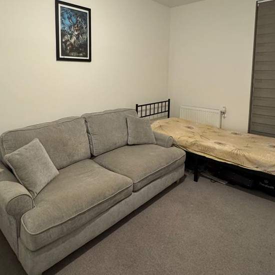 We are pleased to offer a spacious single room with a private bathroom in a brand-new 2-bedroom, ground-floor shared flat, located within a modern new-build development. The room is available to rent immediately and comes fully furnished, providing a comfortable private living space. It includes a single bed, sofa, TV, coffee table, chest of drawers, and wardrobe, making it ideal for a single professional. The flat is finished to a high standard and includes a modern kitchen with a dishwasher, plus a balcony (smoking permitted on the b...