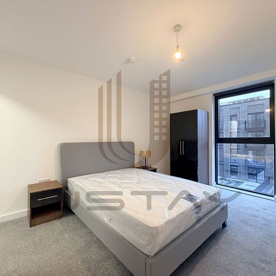 Apartment Description This brand new two-bedroom, two-bathroom apartment offers a modern, high-spec living space. The open-plan living and dining area connects seamlessly to a contemporary fitted kitchen with integrated appliances. Both bedrooms are generously sized, filled with natural light, and feature built-in storage. The apartment benefits from a private balcony with views over landscaped communal areas. Development & Communal Areas Luxury Berkeley Square development with landscaped central square Secure building with on-site Commun...