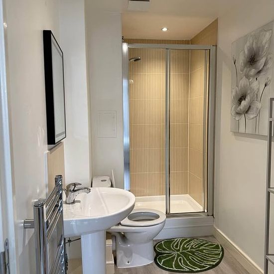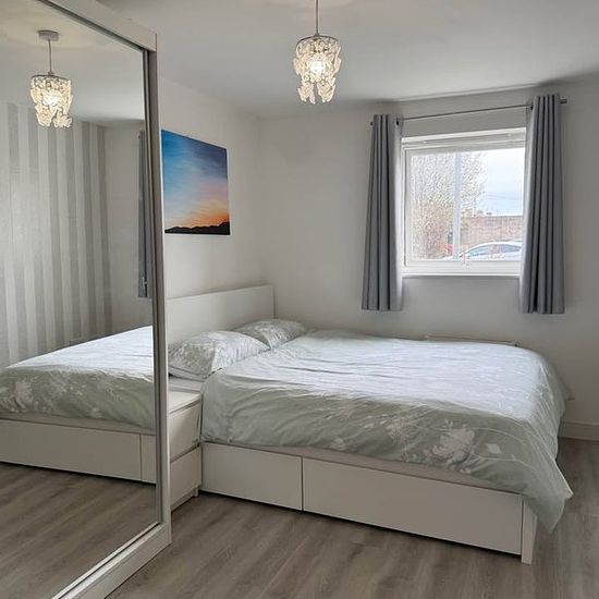 Bedroom 1 - 4m x 2.6m, 10m2 Bedroom 2 - 4m x 2.6m, 10m2 Ensuite - 1.5m x 2.4m, 3.6m2 Bathroom - 2.05m x 1.8m, 3.7m2 Lounge - 3.25m x 7m, 22.75m2 Fully furnished Allocated parking 2 entrances Corner sofa Lounge TV Integrated Slimline dishwasher Washer dryer Microwave Fridge freezer Wardrobes Bed side tables Combi boiler Electric oven Electric induction hob Patio area Sliding doors Kettle Toaster Cutlery Pots and pans Laminated flooring throughout 2 showers 1 bath 2 toilets Large entrance and hallway Plenty of storage 2 large hallway cupboards...