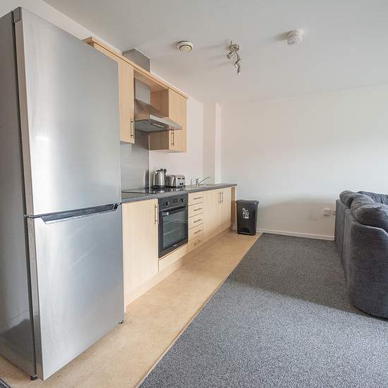 Heywoods can't wait to take on viewings for this well presented two bedroom apartment located in a convenient location close to Hanley Town Centre and on excellent transport links. The property offers ample living accommodation and offered with some furniture inside. The apartment is on the top floor, with two flights of stairs, accessed through a security communal door with a pinpad code. To the left as you walk in, is the kitchen and living area. The kitchen has laminate flooring, which divides the lounge area which is fitted with grey car...