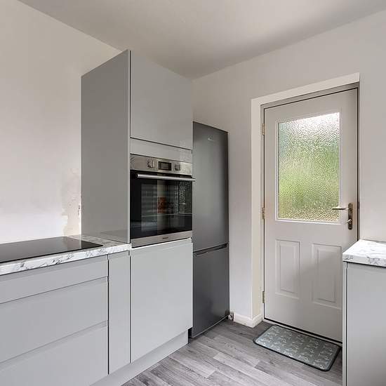 To Let Immediatley True Bungalow Long Term Rental Opportunity Extensive Plot External Summer House Private Driveway Parking The kitchen features a range of wall and base units in grey with complementary worktops. There is an integrated electric oven, four ring hob, stainless steel wash basin and free standing fridge freezer The lounge looks over the rear garden and benefits from plenty of natural light via the impressive window. There is a feature gas fire and a good-sized radiator. There are two double bedrooms with freshly laid carpet thro...