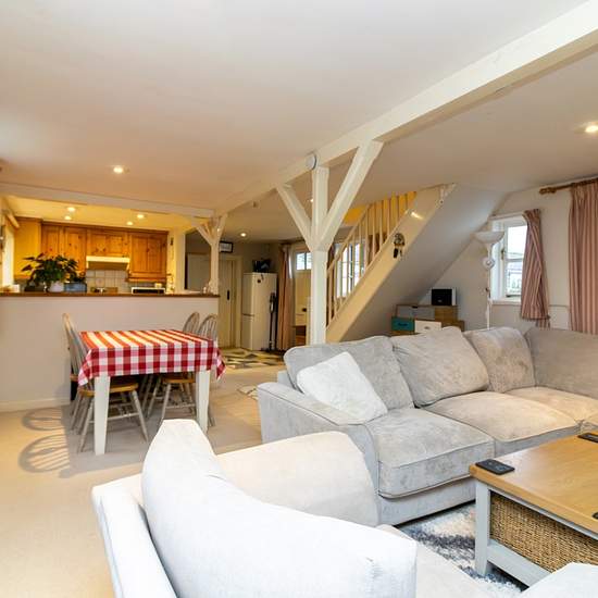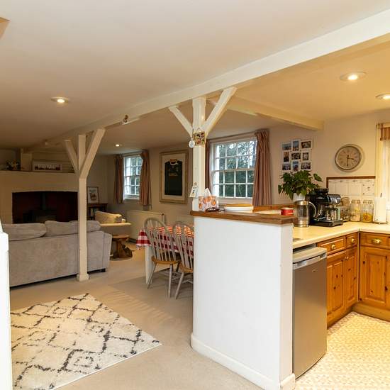 A delightful character annexe converted from the old dairy some years ago. The cottage offers open plan living downstairs with a wood burning stove, beams, well-equipped kitchen with electric hob, oven and fridge and a separate utility area with ample cupboard space, washing machine, dryer and freezer. There is also a downstairs cloakroom. Upstairs, there are two good sized bedrooms and a bathroom, accessed via the master bedroom, with shower over the bath, WC and wash hand basin. The central heating is serviced via an oil fired boiler. Ther...