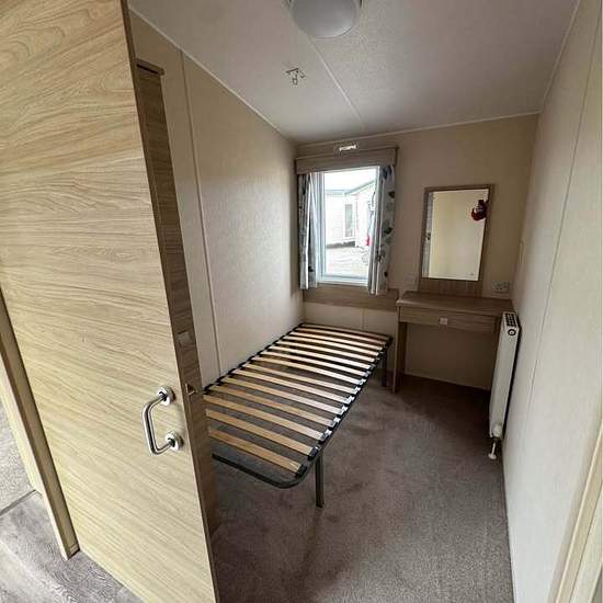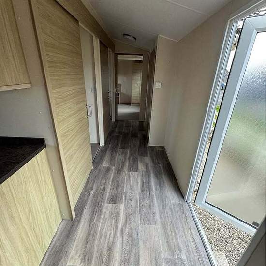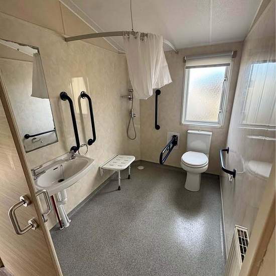 Disabled access static home for own land, garden or rental accommodation, 35 x 12ft 2 bed Atlas Everglades, clean and tidy, double glazed & gas central heated, fitted kitchen with gas oven and hob, spacious lounge with pull out sofa bed, extra wide hallway with sliding doors to single bedroom or office, shower wet room with toilet and sink, master bedroom with hoist, wardrobes, storage cupboard and combo boiler. Delivery and siting can be arranged, at our showground at Wainhouse corner EX23 0AZ