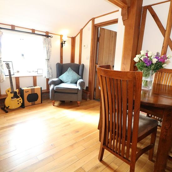 *STUNNING PERIOD DETACHED COTTAGE IN A RURAL LOCATION* A beautiful two bedroom detached period cottage situated just outside Newdigate village with a large lawned garden with covered seating area and ample driveway parking. Reception room with timber beams leading to double doors to patio area. Dining area. Modern open plan kitchen. Ground floor bathroom with bath and shower over. Double bedroom. Large single bedroom with fitted cupboards. Patio garden leading to covered seating area. Large storage shed with washer and drier. Extensive lawne...
