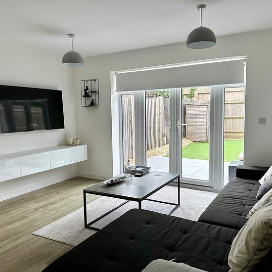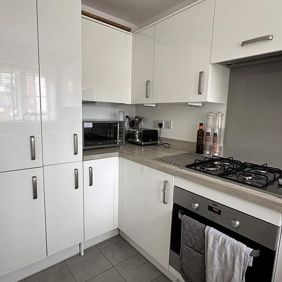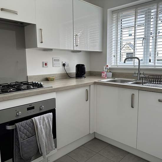 Zero Deposit Guarantee Available Modern two bedroom house with rear garden and off road parking for two cars. The modern glossy kitchen benefits from integrated appliances. The spacious lounge/diner is situated to the rear of the property, with double patio doors leading out to the garden as well as a generous storage cupboard under the stairs. There is also a downstairs toilet. Upstairs are two double bedrooms. The master bedroom offers an en-suite shower room, while the second bedroom has an inbuilt wardrobe with sliding doors. The f...