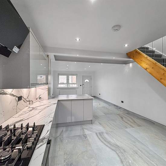 Unfurnished 2 Bed Mid Terraced House Which Has Been Completely Refurbished with A New Gas Central Heating System, Gardens, Residents Parking & Close to Amenities. Lounge Good sized lounge with PVC double glazed window to front, stunning Porcelanosa tiled flooring and skirting followed through to the kitchen. Freshly painted plastered walls. Open access through to kitchen. Kitchen Fully refurbished kitchen fitted with a range of wall and floor mounted high gloss light grey units with under unit lighting, ample worktop space with splashback, b...