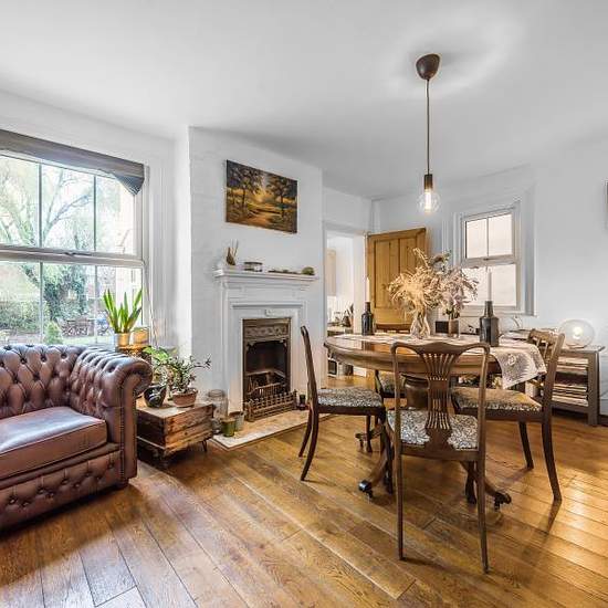 A character semi detached two bedroom house located in Guildford Town Centre close to local amenities and transport links. Property benefits from two good size reception rooms with feature fireplaces, a Shaker-style kitchen, modern bathroom and a good size rear garden. The front door enters into a welcoming hallway with access to stairs, lounge and dining room. The lounge features a bay window overlooking the front, as well as an open fire place. Wood flooring continues through to the dining room also with a feature fire place and a window o...