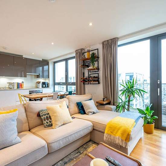 A beautifully presented 2 bedroom luxury flat Presented over the 8th and 9th floors of a contemporary development with lift Generous reception room offering space to dine and entertain Open plan kitchen with high quality fixtures and fittings Private decked balcony with superb, far reaching views 2 well proportioned bedrooms flooded with natural light Sleek family bathroom with white suite Large utility storage cupboards Set over the 8th and 9th floors of a stunning development (with lift), this outstanding property boasts high quality fixtu...