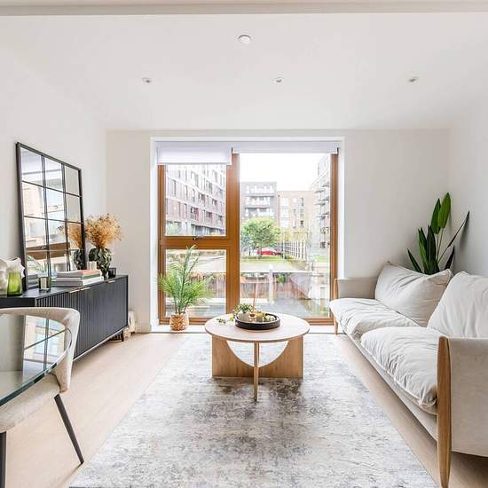 Newly developed building and area Elegant and bright interiors with underfloor heating Fully fitted kitchen with integrated Bosch appliances Two double bedrooms with built in wardrobes Master and ensuite bathrooms Secure building with bike storage Communal courtyard and private outside space Photos depict show flat, some layouts may vary Stunning 2 bedroom ground floor flat offering contemporary décor throughout the property, modern kitchen with fitted appliances, dining area and reception room with views over Limehouse cut. This property is...