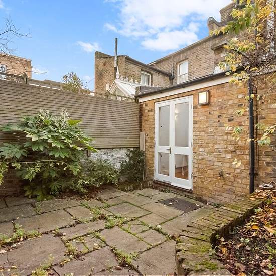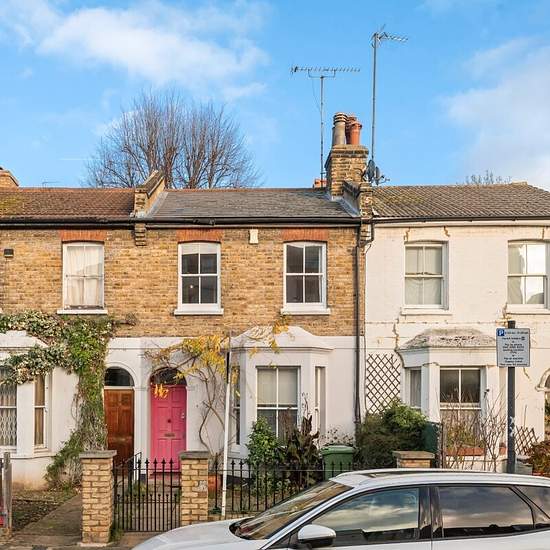 This delightful Victorian cottage on sought-after Hofland Road offers a spacious double reception room with dwarf cupboards and wood flooring throughout, a conservatory-style kitchen, a downstairs WC, and a secluded paved and walled rear garden. The full-width principal bedroom at the front of the first floor features two south-facing sash windows that fill the room with natural light, along with built-in storage flanking the chimney breast. The property also includes a second double bedroom and a family bathroom with a separate shower. Hofl...