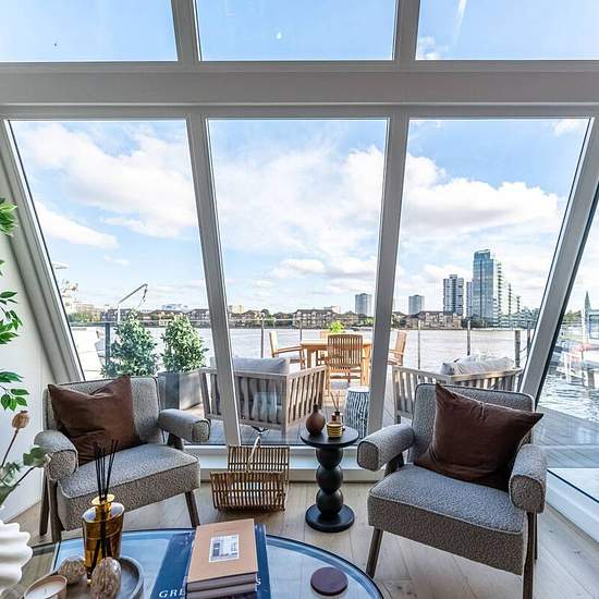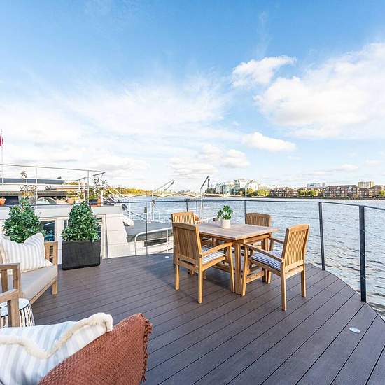 Bespoke houseboat Recently renovated to high standard Open plan living Superb terrace with lovely views of the River Thames 2 en suite bedrooms Modern decor Air conditioning throughout Exceptional area in Chelsea Available with Zero Deposit Recently renovated to a high standard, this bespoke luxury 2 bedroom houseboat in Chelsea features modern decor, 2 en suite bedrooms, stunning river views from a wonderful terrace and stylish open plan living room. Situated in an exceptional area of Chelsea, offers local amenities within easy reach and Ki...