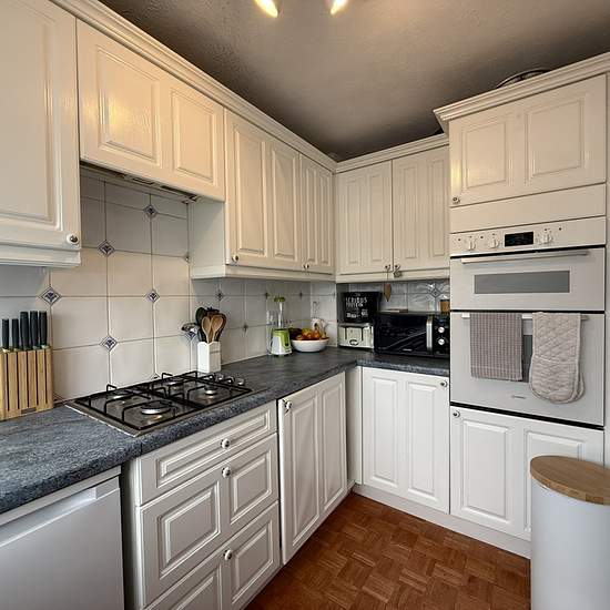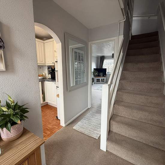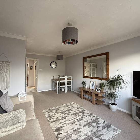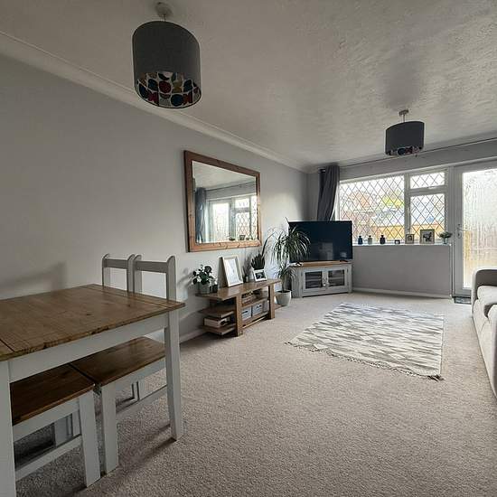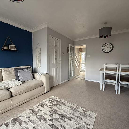 Available 13th March 2026. A well-presented two double bedroom house with garage, parking and enclosed rear garden. The front garden is a courtyard with steps to the main front door. The entrance hall has stairs to first floor and an arch through to kitchen. The kitchen has matching white wall and base units, roll edge work surface, space and plumbing for washing machine, space for appliances include an under counter fridge and freezer, built in oven, grill and four gas burner with extractor hood above. The lounge diner has a large under sta...