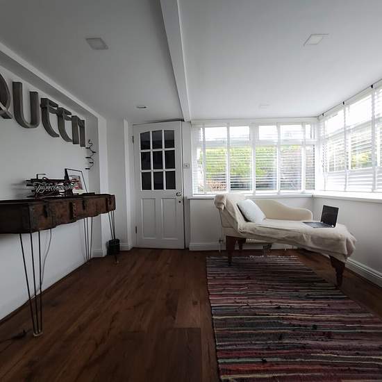 Front door leading to large, light and airy, double aspect lounge/dining room, neutrally decorated and with wooden flooring. The kitchen offers a good range of wall and base units and has a door to the garden. There is a large master bedroom with wooden flooring and a further large double bedroom, the third bedroom is a good sized single currently housing a single bed and home office. Externally there is a self contained studio annexe with open plan studio room / kitchen and a shower room, perfect for a growing teen or elderly relative. Cou...