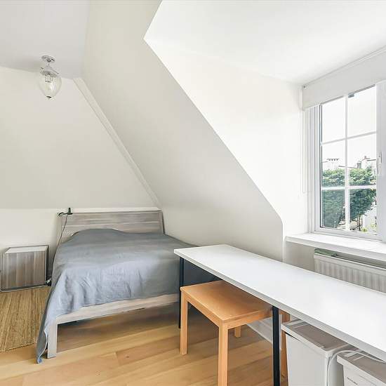 Set over the upper floors of a handsome period conversion, this spacious apartment offers over 1,200 sq ft of beautifully arranged living space in one of NW6’s most sought-after streets. The first floor features a generous reception room with a bay window and high ceilings. This stylish kitchen/breakfast room opens on to a private southwest-facing terrace and a well-appointed family bathroom. Two double bedrooms, including a substantial principal bedroom with ample natural light, complete this level. Upstairs, the second floor features a bri...