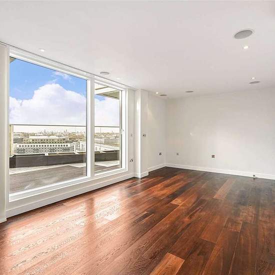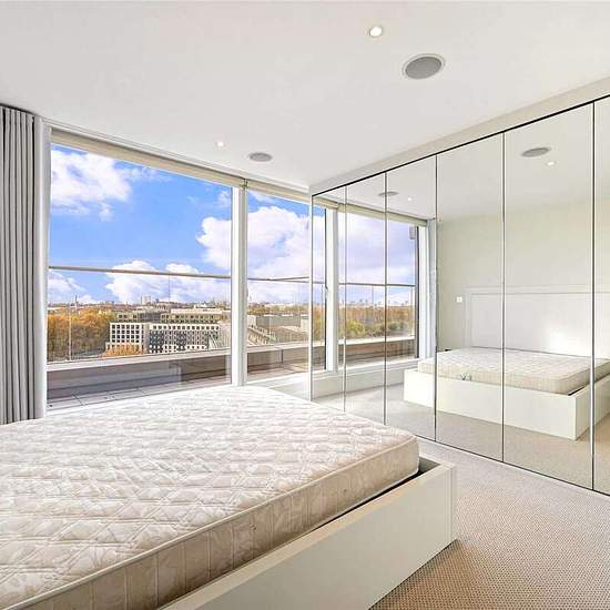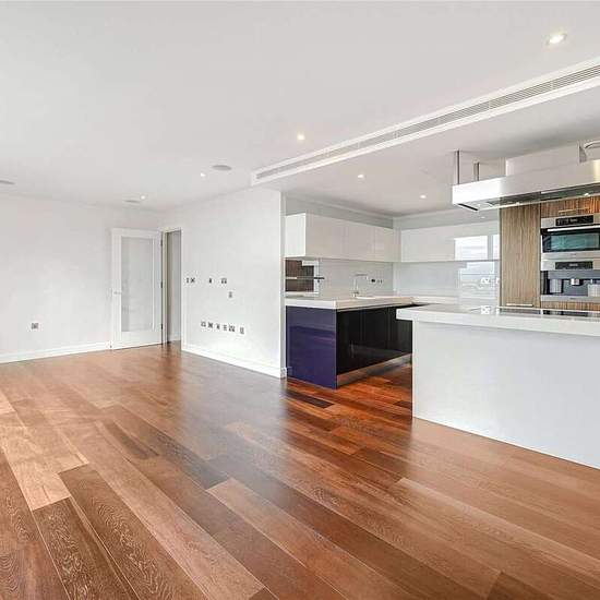 A newly refurbished, three bedroom apartment available in the Grosvenor Waterside development. The apartment is located on the eleventh floor, and boasts three bedrooms, two bathrooms including one en suite, spacious and bright open plan reception and kitchen and ample storage throughout. Residents benefit from 24 hour concierge, leisure suite with a gym and spa facilities (via separate negotiation). On-site shops, restaurant and private kids club.