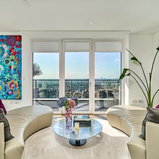 Available: Now Situated on the 22nd floor of a sought-after development, this beautifully presented furnished three-bedroom apartment offers contemporary living with breath-taking river views. The open-plan living space features floor-to-ceiling windows, a sleek modern kitchen, and stylish décor throughout. Residents benefit from exceptional on-site amenities, including a fully equipped gym and 24-hour concierge service for added convenience and security. Perfectly located, the property is just a short walking distance to Clapham Junction, p...