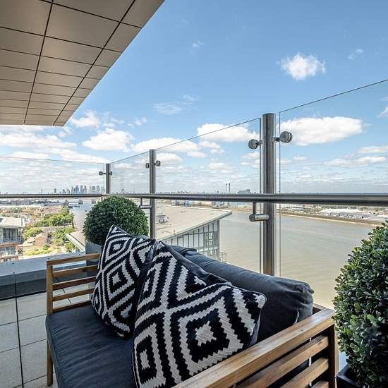 Perched on the 22nd floor, this exceptional 3-bedroom, 3-bathroom penthouse offers luxurious living with uninterrupted views of the River Thames and the iconic London skyline. The spacious interior features three large bedrooms, including two with stylish en-suites and a sleek guest bathroom. Floor-to-ceiling windows flood the home with natural light, while three private balconies provide the perfect setting to enjoy breathtaking sunrise and sunset views over the city. Residents benefit from a 24-hour on-site concierge, fully equipped resi...