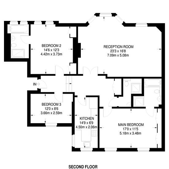 Located on the 2nd floor with lift access Wonderfully spacious bay-fronted reception room Integrated kitchen with ample storage space 2 bedrooms with fitted wardrobes and en suite bathrooms Additional double bedroom Modern shower room Lots of natural light Excellent ceiling height Set within an imposing mansion block in the heart of Fitzrovia, this fabulous 3 bedroom apartment offers a wealth of living space and boasts modern décor. A wide range of shops, bars, cafes and restaurants can be found around Great Portland Street, Charlotte Street...