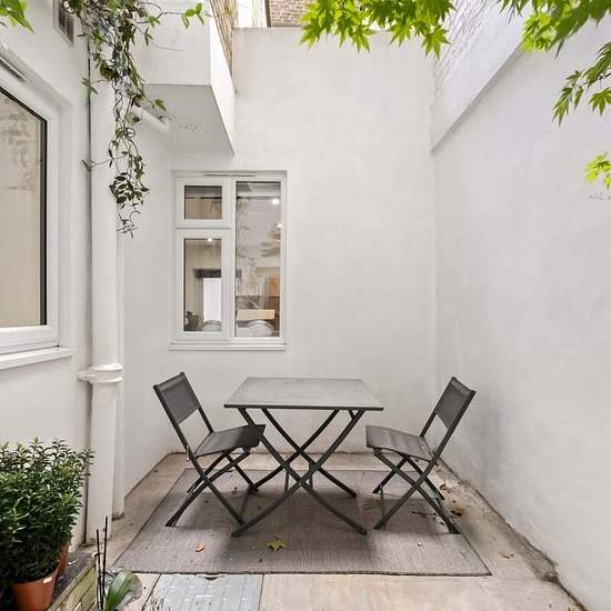 A beautifully refurbished three double bedroom, three bathroom property set on one of the area’s most desirable garden squares, offering private outdoor space. The principal bedroom opens onto a private white gravel patio and features an en-suite bathroom, while two further bedrooms also benefit from high-quality en-suite bathrooms. The property boasts a spacious front reception room, a generous hallway, and cleverly converted vaults providing additional storage and a utility area. The separate modern kitchen is fully integrated with high-en...