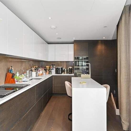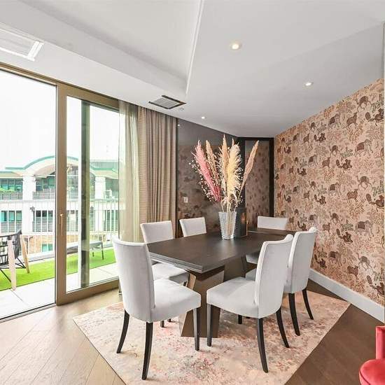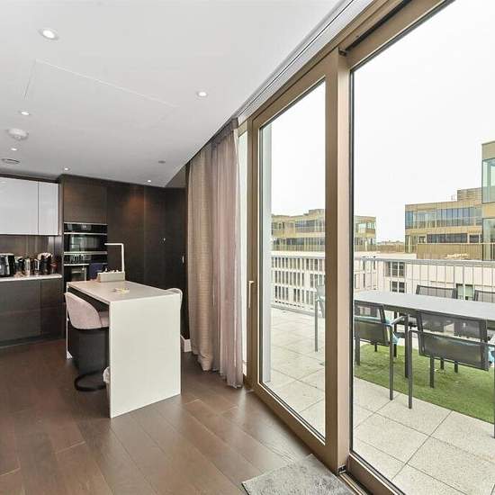 This stunning duplex apartment on the ninth floor offers an exceptional living experience, with three generously sized bedrooms located on the upper level. Downstairs, a spacious dual-aspect reception room opens onto a large private terrace, ideal for entertaining or relaxing while taking in the sweeping panoramic views. A sleek, modern kitchen with integrated appliances completes the lower level, blending style with functionality. Residents enjoy 24-hour concierge service and access to premium amenities, including a gym, swimming pool, stea...