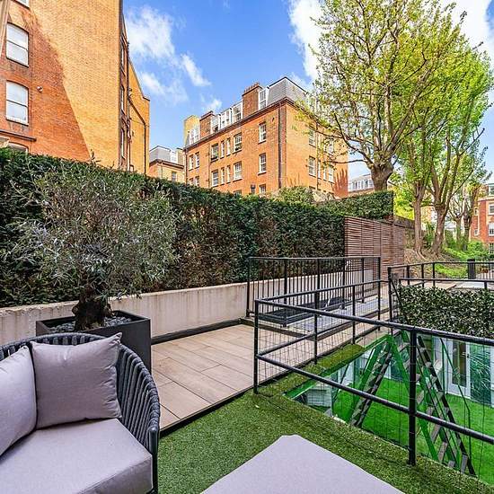 Set across the ground and lower ground floors of a handsome red-brick building, this three-bedroom apartment has the scale and feel of a house, with generous proportions, period detailing and two private outdoor spaces. Lying on the coveted border of Chelsea and Knightsbridge, it offers a rare sense of privacy so close to the centre of London. The main reception room sits at the front of the apartment and is defined by its tall bay windows, ornate ceiling work and impressive ceiling height. It is a room designed for both entertaining and eve...