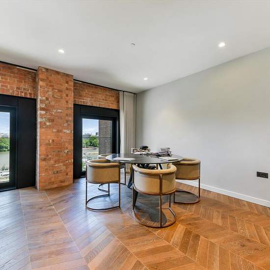 A modern three bedroom apartment with direct river views and 1,834 sq ft of living space in Switch House West, Battersea Power Station. This immaculate apartment has been furnished to an exceptional standard and benefits from exposed brickwork throughout. It offers three bedrooms, both with an en suite bathroom and built-in storage. There is also a separate family bathroom and a separate utility room. The property also features underfloor heating and a copper bath The open-plan kitchen reception room offers stunning views of the Thames and i...