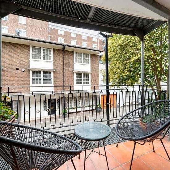 Located on the raised ground floor of a well-maintained building on Seymour Place, W1H, this beautifully presented 2-bedroom, 2-bathroom apartment offers 933 sq ft of bright and well-designed living space, perfect for comfortable modern living in the heart of Marylebone. The home features a generous dual-aspect living and dining area, with expansive windows and French doors that flood the space with natural light and provide direct access to a private balcony/terrace overlooking a quiet, charming mews-offering a rare blend of tranquillity an...