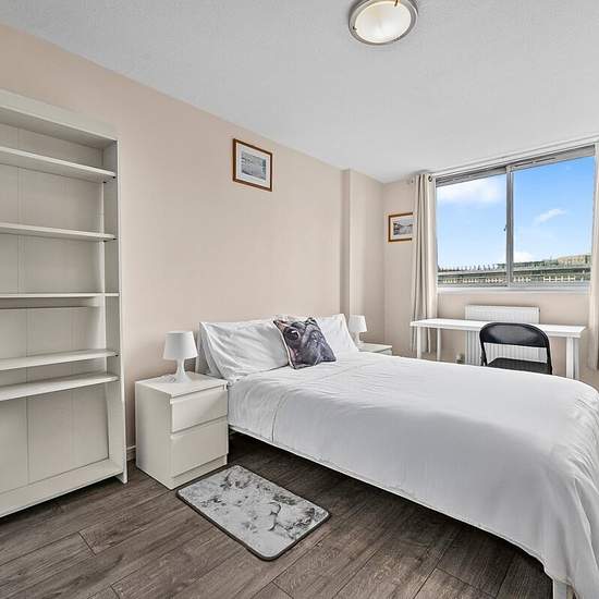 Three bedroom apartment excellently located just moments from Farringdon station for easy access around London. Benefitting from 3 double bedrooms and bright outlook from the 7th floor of the building. The apartment has two bathrooms and spacious separate kitchen. Available for short stays between 2-6 months, with all utility bills included in the rent. The location is great for tenants looking to be within walking distance of many great neighbourhoods. Covent Garden, Bloomsbury, Fitzrovia, and Clerkenwell are all within easy reach.