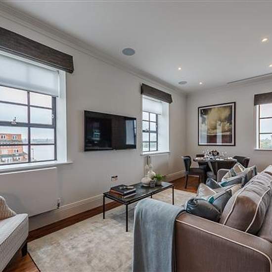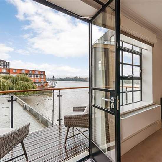 On offer is over 1200 sq/ft of luxury living set over three floors. On the first floor is the master bedroom which boasts not only an en suite shower room but also a balcony whilst the second bedroom also has an en suite bathroom. There is a further third bedroom and shower room on the second floor, a separate laundry room with washer/dryer and spacious kitchen/diner perfect for entertaining. The third floor provides access to the private roof terrace overlooking the river. The fully fitted Metris Kitchen is complete with Miele appliances in...