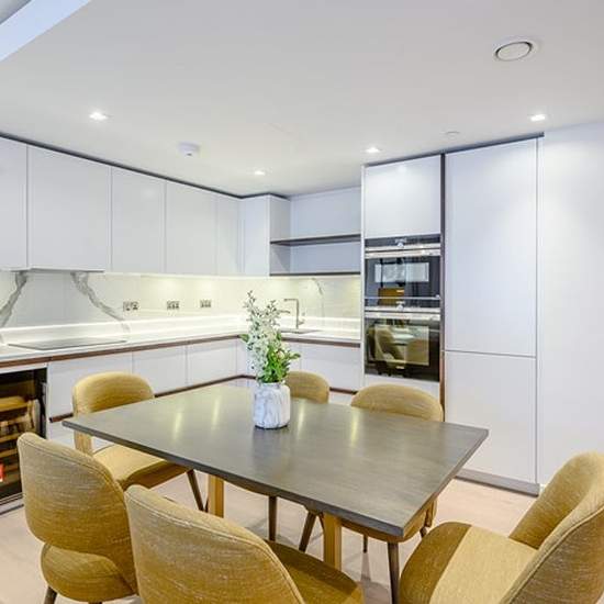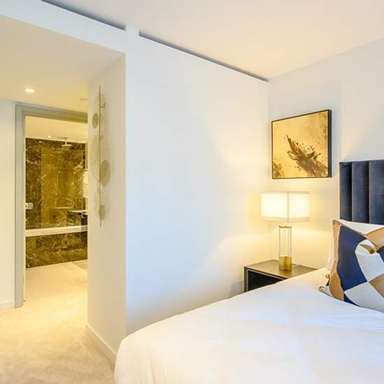A spacious fully furnished 3 bedroom 2 bathroom luxury apartment within this newly built development with parking and leisure facilities. A video tour is available. The prestigious development offers the use of the communal facilities including the swimming pool, gym, spa, cinema room, WiFi, secured parking, bike storage, lifts and 24 hour concierge. The gross internal area is approximately 1023 square feet / 95 square metres plus a balcony. This internal designed apartment is set on the first floor and consists of a living room with wood fl...
