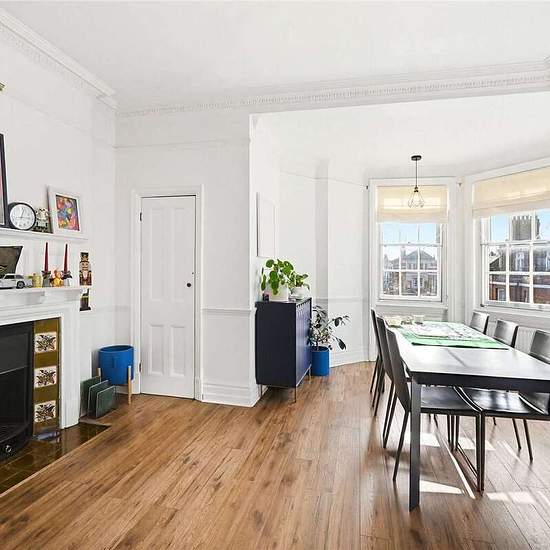 This beautiful triple aspect period apartment is enviably situated on the top floor (with lift) of a charming mansion block, with impressive views and lots of natural light. The property is well presented throughout and at over 1,700 sq. ft., with generous ceilings height, it offers an abundance of space, complimented by charming period features. The property comprises: 2 spacious reception rooms, 3 bedrooms (2 of which are very large), separate fully-fitted kitchen, 2 bathrooms plus use of an off-street parking space. Ashley Gardens is well...