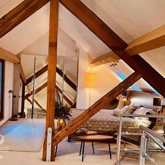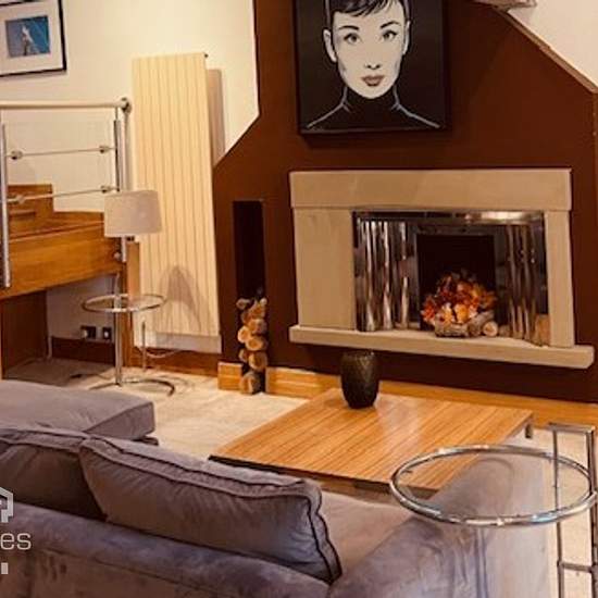 Furnished first floor apartment. Private Entrance, Open plan lounge and fitted kitchen with breakfast bar, 2/3 bedrooms, En-Suite shower room, bathroom, mezzanine dining area, balcony. EPC: C