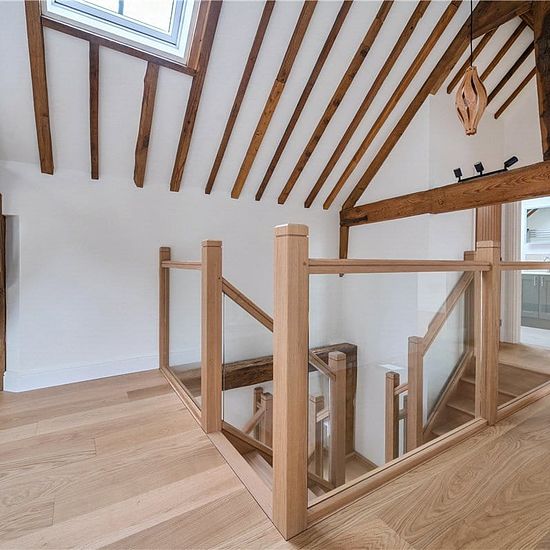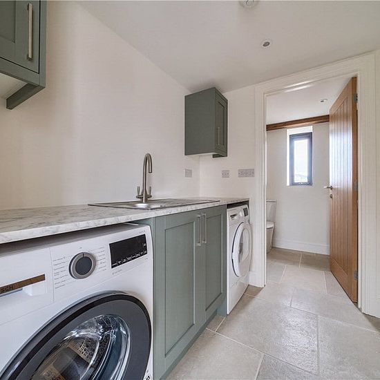 Stunning detached barn conversion offering distant views over farmland. Newly converted to an exceptional standard throughout, set in a small courtyard. Double height, light filled living space incorporating a quality fitted kitchen with inbuilt appliances, breakfast bar, dining area, living area and bi fold doors to the rear patio. Utility room with white goods and cloakroom. Ground floor principal bedroom with dressing area and ensuite shower room. Split level stairs leading to the mezzanine area which gives access to two further bedrooms ...