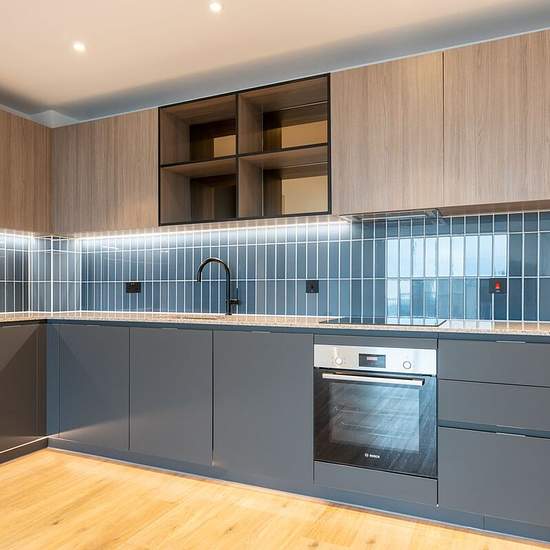 Key features Bright open-plan kitchen, dining, and living area designed for modern lifestyles Three well-proportioned bedrooms with fitted wardrobes and premium carpeting Elegant bathrooms with matte black fixtures and heated towel rails Private balcony or terrace with views over the residents’ gardens and Central Gardens Timber-effect flooring throughout the living spaces Bosch integrated appliances: oven, induction hob, fridge/freezer, dishwasher, washer/dryer Underfloor heating throughout (excluding bathrooms) Video entry system and secu...